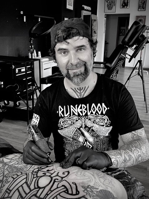 Abel, tattoos out of Barcelona - Spain, and is one of the few nordic artists on the Iberian peninsula, very well versed in the heavier style, Mammen, and has the tendency to make tattoos with high contrast, boldness and a nice amount of grittiness to it, with a touch of the rustic, as well a power ancientness, well worth a follow.